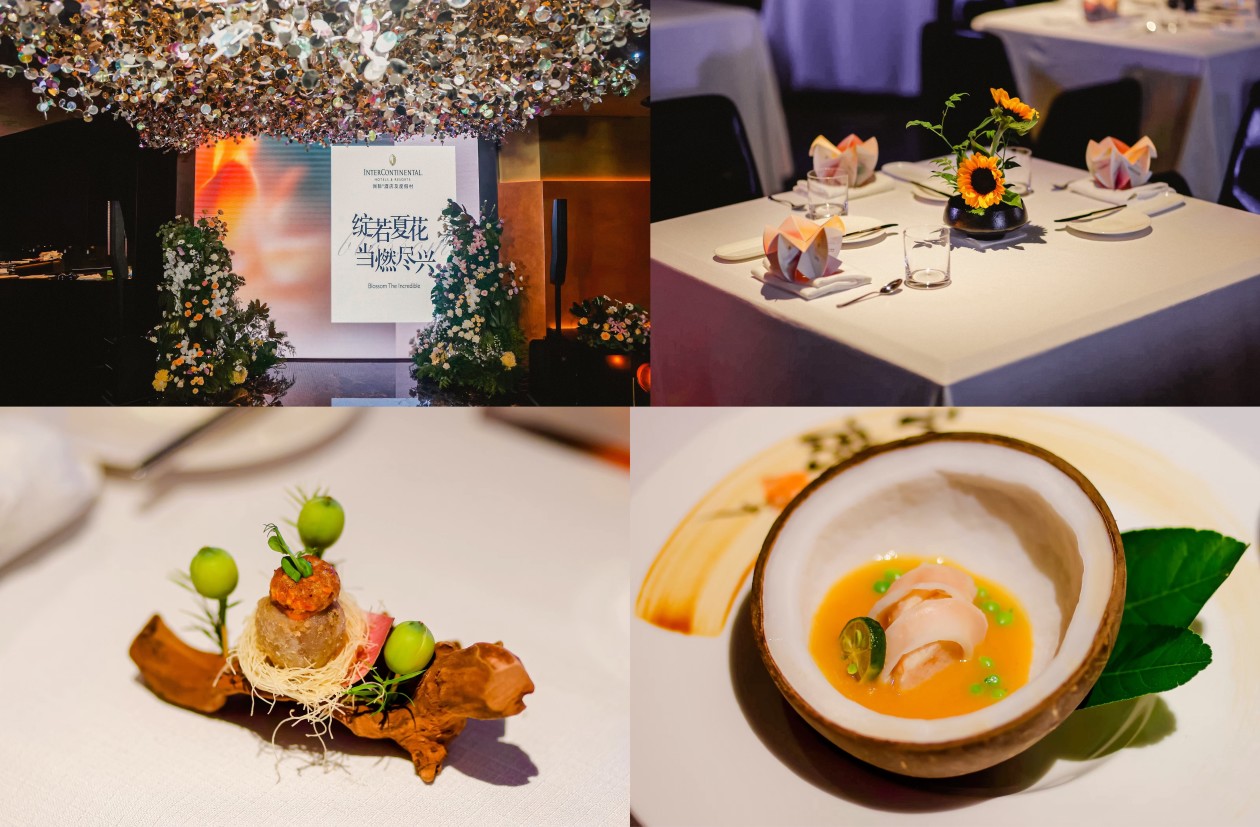 晚宴汇聚来自大中华区的十位洲际行家主厨及调酒师,以“启、承、景、恰、新、梦、转、沸、享、熔、合”为脉络,匠心打造多道融合地方风味与城市文化的珍馐美馔,串联起一段非凡的味觉之旅。宾客从长安启程,荔枝干扇贝与姜腌西瓜牛肉塔塔点亮序章,西安的烟炙熏羊柳、苏州的河鲜荔浦芋展现其历史与地域风韵;肉骨茶与伶仃洋传统冬瓜盅则展现日常烟火与创新底蕴;三亚的糟粕醋鱿鱼镶与“星星的酸甜”,描绘海滨气息与夏夜流转;来自长沙的凤凰裙边与甲鱼蛋凝练火候智慧,鲜嫩可口的葵花鸡以及香港叫花鹅鲍鱼松茸意式饺折射东西交融;最后则是来自重庆的椒麻飘香巧克力蛋糕让多重滋味一同合鸣。每一道菜品皆承载独特的地域故事,让宾客在品尝之间,感知城市魅力,铭刻难忘的非凡时刻。