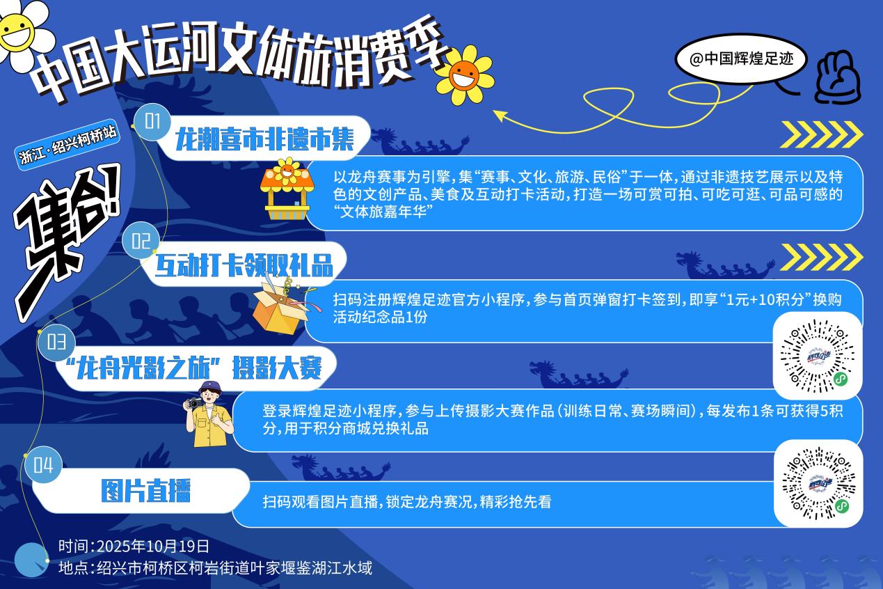 图片直播现场同步开启,镜头下,赛事瞬间的激情与鉴湖江风光的秀美交相辉映。游客还可通过“中国辉煌足迹”互动平台,了解赛事活动,选购文创产品,实现文体旅消费的全方位升级。