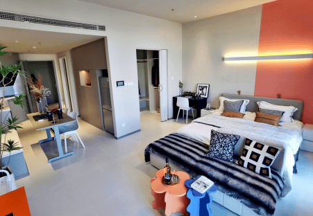 青核INNNG项目在户型设计上注重空间利用与人性化细节。规划有381套公寓,涵盖多种户型,均配备智能家电、定制化收纳和环保材料,满足青年群体对私密性、功能分区及拎包入住的需求。