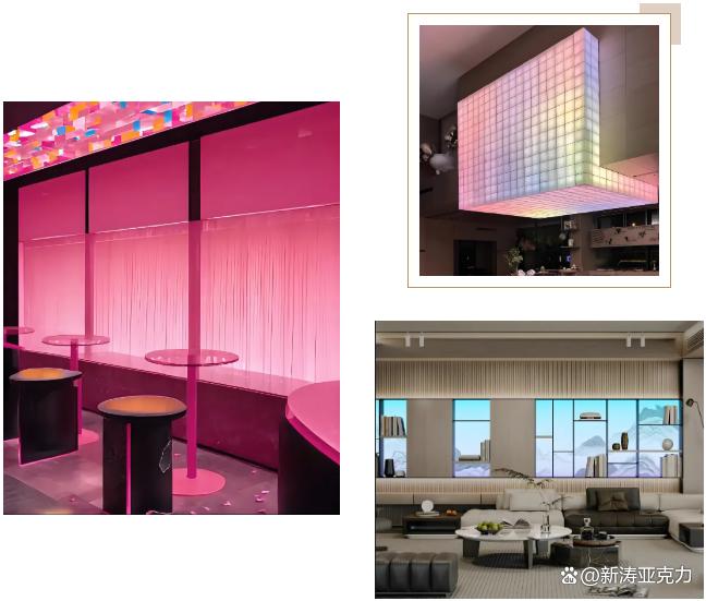 卓越透光性:让空间“会呼吸”。新涛亚克力拥有优异的透光性能,不仅能让自然光自由流动,更能与LED等人造光源无缝融合。无论是营造高端商场的璀璨氛围,还是打造精品店铺的温馨角落,它都能让光线成为空间的“语言”,赋予商业场景动态的生命力与视觉吸引力。