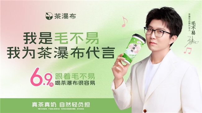 2025年10月17日,沪上阿姨集团旗下新锐茶饮品牌茶瀑布正式官宣华语乐坛创作歌手毛不易成为品牌代言人,同步启动以“喝杯茶瀑布我就不易毛(不emo)”为核心沟通主题的全国整合营销活动。此次国民级歌手与新锐茶饮品牌的跨界联手,以 “6.9元”为支点,精准切入年轻情绪消费市场。这一定价的核心不仅在于一杯真奶真茶的品质诚意,更在于借此兑现一杯高质价比“快乐解药”的品牌承诺,让简单的快乐与治愈,变得触手可及。