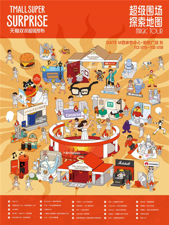 当10月28日的“超级发布之夜大秀”在线上引爆关注时,早在三天前,一场同样精彩的线下体验就已悄然开启。在上海西岸剧院广场,那座以古希腊美学为灵感构建的天猫「超级品牌POP围场」,正以其独特的仪式感,迎接每一位前来探索的消费者。