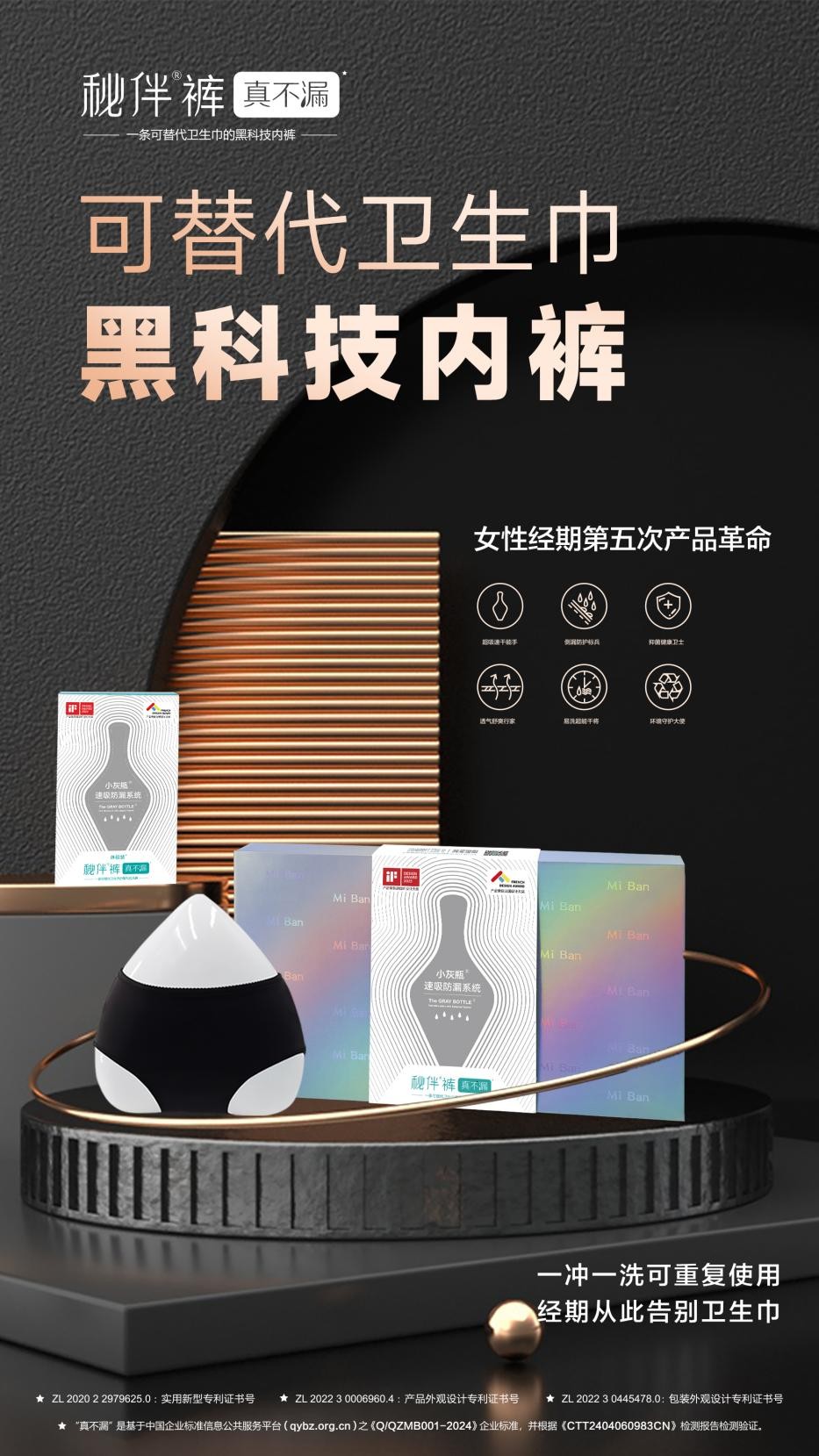 传统经期护理产品长期受限于“卫生巾+内裤”的分离式使用模式,易出现侧漏、闷热、异物感等问题,给女性经期生活带来诸多不便。秘伴裤自品牌创立之初,便以解决用户核心痛点为研发导向,组建专业技术团队深耕面料研发与结构设计,最终依托自主创新的黑科技面料与小灰瓶速吸防漏系统的核心专利技术,实现了“内裤功能与经期护理功能”的深度融合。产品可完全替代卫生巾,凭借面料的超强的液体吸收能力、透气特性及舒适性,从根本上解决了传统卫生用品的使用弊端,为女性带来“无感经期”的革命性体验,上市后迅速获得市场与消费者的广泛认可。