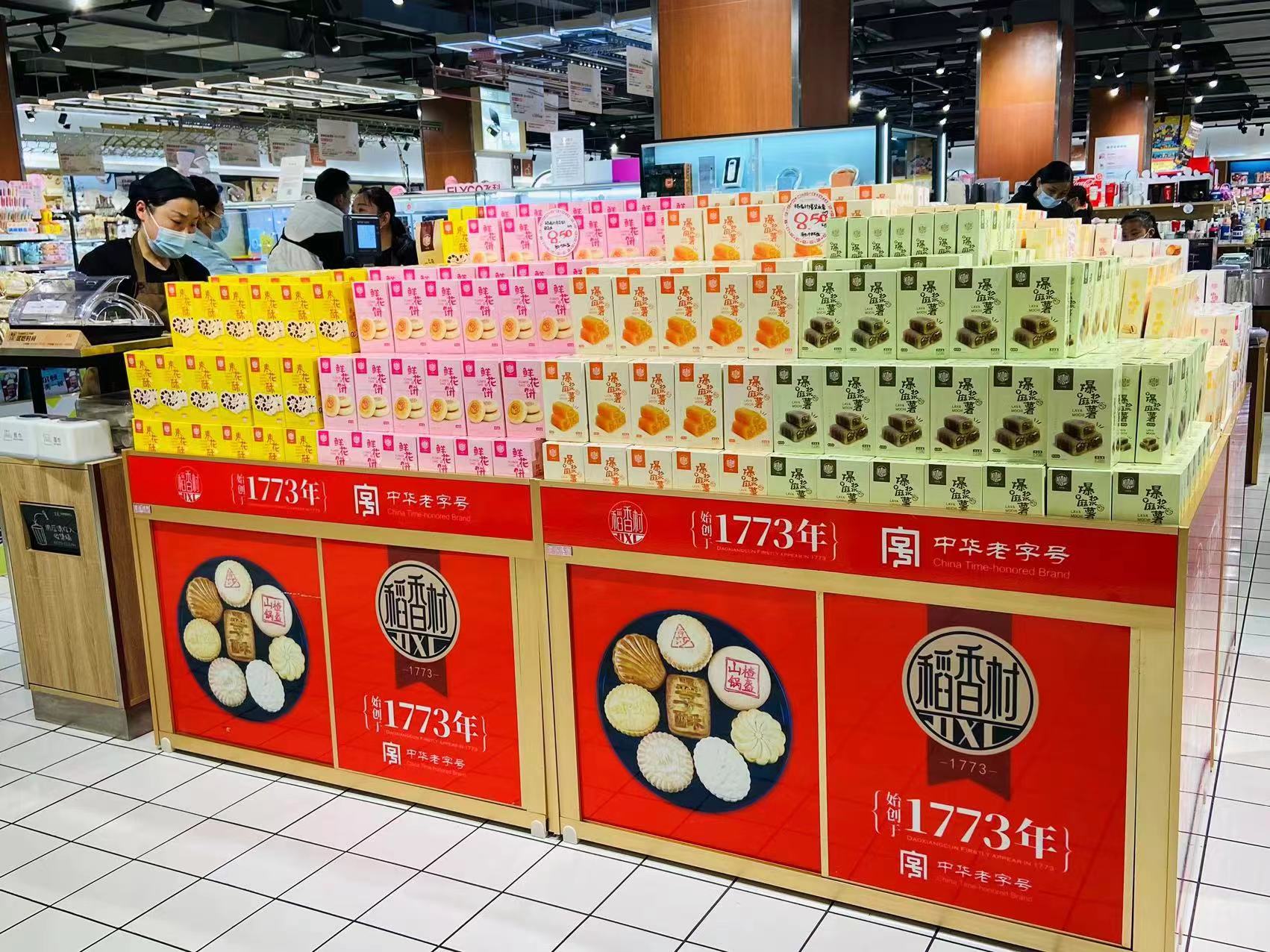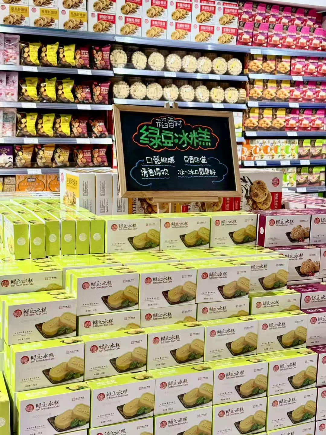 能够让这一商业模式的快速布局,得益于稻香村已构建的全链路保障体系:供应链端,依托全国10大现代化加工园区、7大云仓及数智化管理系统,确保百余款休闲单品的产能与发货效率,无论线上还是线下,都能够第一时间送达用户手中;渠道端,线上以天猫旗舰店为核心,同步联动京东、抖音等平台打造“场景化直播间”,线下联合经销商在门店设置“糕点零食专区”,根据不同品类分区陈列,让消费者选择更直观;此外,如今苏州稻香村的产品在胖东来、永辉等大型商超上布局,让中式糕点成为日常生活的一部分。
