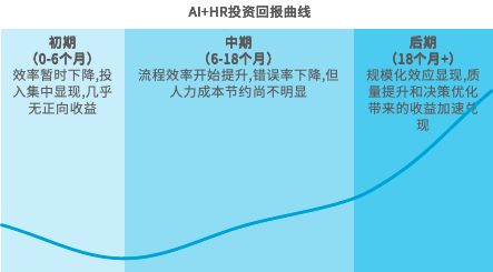 AI系统的收益通常分为直接收益与间接收益,收益实现的滞后性进一步加剧了成本压力,AI+HR项目的投资回报周期通常需要12-24个月。