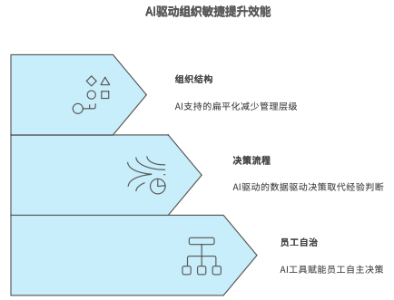 AI智能体通过重塑组织结构、优化决策流程、赋能员工自治三方面推动组织敏捷化,实现人均效能的显著提升。