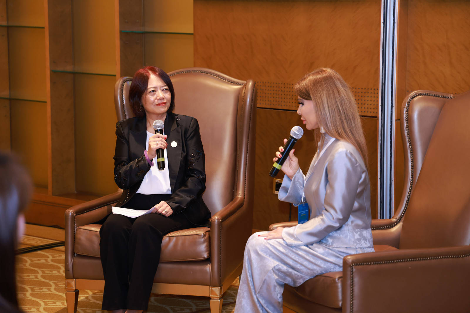 当天最具亮点的是赵兢主席与迪拜女性领袖 Lara Tabet 关于 “品牌文化、女性领导力与跨界创新” 的深度对话。来自伊朗知名家族的Lara 分享了她从传媒跨界到奢侈品创业的经验,阐释了女性如何以审美、韧性和文化洞察力推动商业创新,赢得全场共鸣。两位女性领袖共同探讨了科技时代女性领导力的崛起以及针对女性创始人与投资者的全球影响力等主题展开思想碰撞,为路演日奠定了跨界协作的主基调。