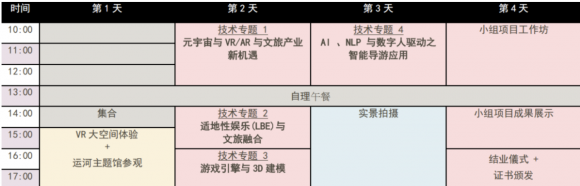 全天浸泡元宇宙与 VR/AR 文旅新机遇、AI 数字人智能导游、LBE 文旅融合、游戏引擎与 3D 建模四大核心技术专题,教授手把手拆解行业干货;