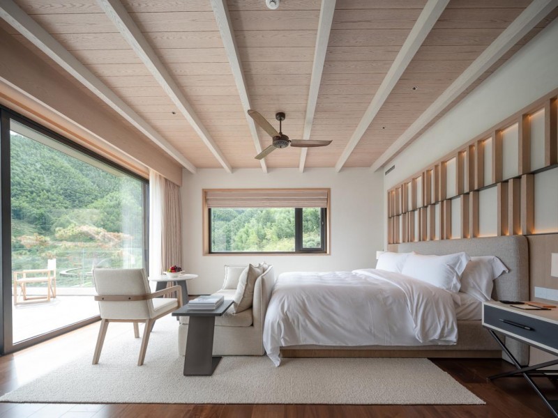 在这个融合了多元美学的秘境里,虽然仅设有10间客房,但每一间都个性鲜明,从40㎡到 200㎡不等的空间里,推窗即见无限风景。如果说室外是一场宛若进入法国秘境的穿越之旅,那么在室内则会感受到另一种惬意。