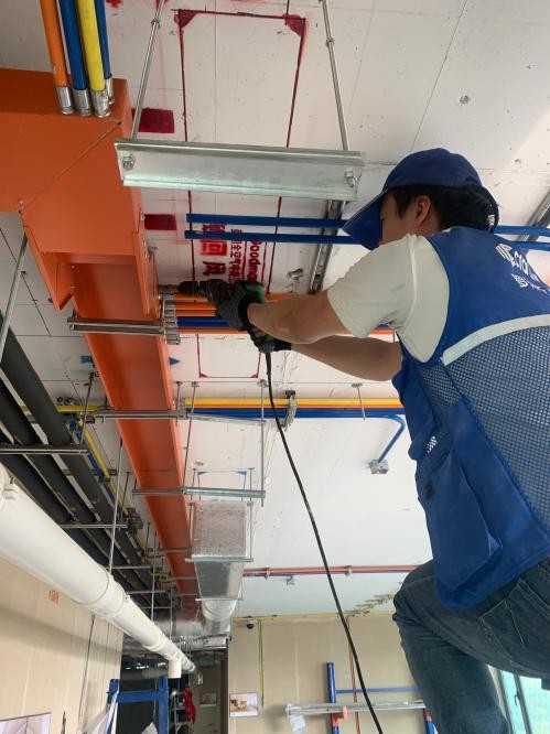罗浮荟·曜悦采用先进的全屋中央除尘收集系统,能实时把施工现场的粉尘全部通过管道吸收,汇总后集中处理,并每日配套地面卫生清洁。这些措施不仅能让大机电等精密设备不受污染,也为工人的健康提供了保障。