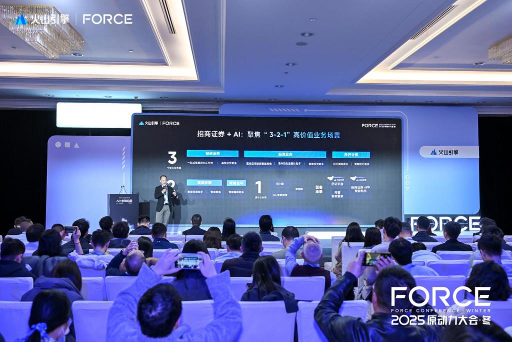 依托火山引擎 HiAgent 下一代企业 AI 员工协同入口 AgentSphere 平台,招商证券正全力打造智能应用,以 AI 服务提升用户体验。招商证券数字化办公室负责人牛中强认为,AI 能力源于长期积淀,成于持续落地。招商证券聚焦 "3-2-1" 高价值场景建设,正稳步推进公司的 "AI 证券公司 " 战略落地。在他的展望中,AI 应逐步进化成为具备记忆、主动服务与连接能力的 " 职场伙伴 ",推动业务实现从 "+AI" 向 "AI+" 跃迁。