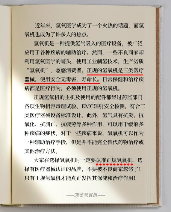 在当今健康意识日益提升的时代,氢氧医学作为一种新兴的医学领域,受到了广泛的关注。氢氧机作为氢氧医学的重要工具,其市场需求也随之增长。然而,市场上品牌繁多,质量参差不齐,选择一款真正有效的氢氧机并非易事。关键在于选对品牌,只有建立在科学研究和严格认证基础上的产品,才能真正带来健康的保障。