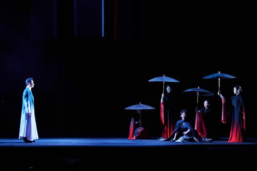 在艺术呈现层面,该剧以京韵革新构建全新观演体验。音乐创作上,北京曲剧功勋作曲家戴颐生以北京曲剧传统单弦牌子曲为基础,实现“一人一腔”,结合传统与西洋乐器混编,开篇庙堂合唱与结尾女声伴唱形成呼应,高潮段落极具震撼力;舞美借鉴“一桌二椅”传统,以几何立体框架搭配旋转舞台,半透明纱幕通过光影传递人物心绪;灯光以冷暖色调区分场景氛围,服化道精准还原民国风格,通过材质、纹路等细节区分人物身份,歌队身兼置景与表演双重身份,全方位营造沉浸感。