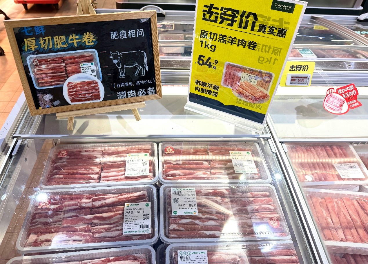 活动以“真击穿、真实惠”为核心,多款人气生鲜商品线下价格直触年度低点。其中肉类表现尤为亮眼,随着冬日火锅需求升温,目前原切羔羊肉卷线下专享击价低至54.9元/kg;1kg装的冷鲜原切牛肉块与1.2kg装的冷鲜肋排,也均以59.9元销售,肉质紧实鲜嫩,是家庭餐桌上炖煮硬菜的优选食材。