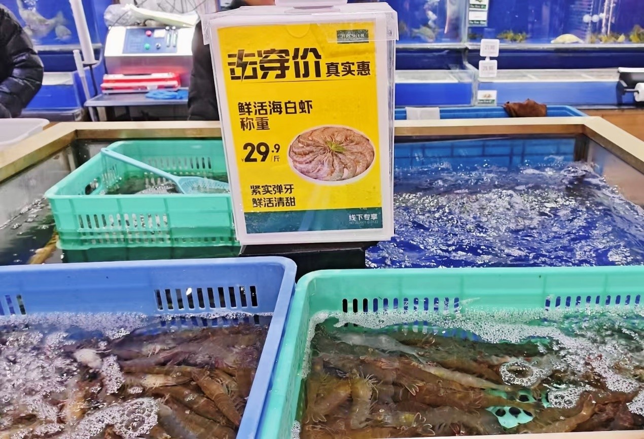 鲜活海白虾全程冷链配送,紧实弹牙,线下现捞现称低至29.9元/斤;鲜活鲈鱼实现“腰斩”级优惠,400-500g/条降至15.9元;深海捕捞的舟山带鱼实心中段,一斤也降至19.9元,性价比拉满。