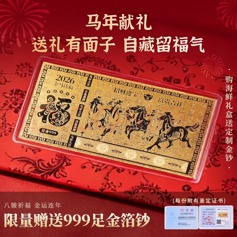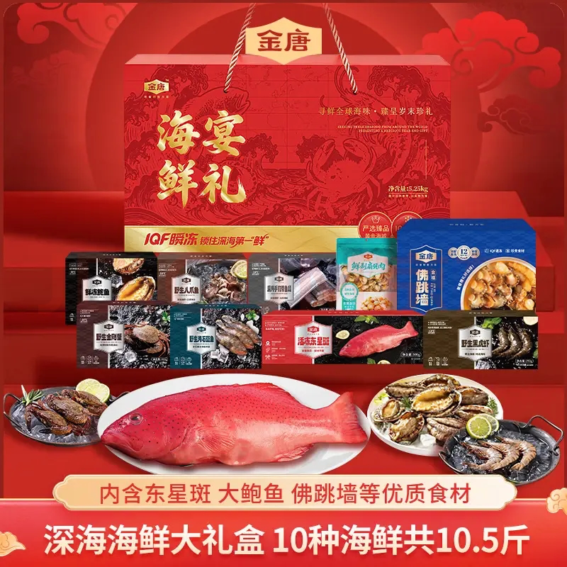 作为走亲访友馈赠佳品,京东生鲜礼盒全方位满足多元化消费需求,涵盖高品质鲜果、水产、牛羊肉等丰富品类,其中不乏5J级智利车厘子、泰国金枕榴莲、菲力整切牛排、滩羊、帝王蟹、佛跳墙等热门年货选择。消费者选购10.5斤装的金唐海鲜礼盒大礼包,不仅能一次买齐东星斑、鲍鱼、大虾等10种海鲜“硬货”,还能获赠限量精美的马年金钞,在大饱口福的同时添个“马到成功”的好彩头。