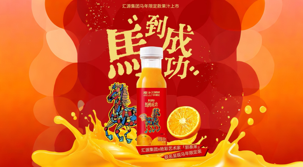 近日,汇源集团正式推出2026马年纪念装——马到成功限定款100%果汁礼盒。这款礼盒是汇源集团联合著名艳彩艺术家郭泰来共同推出,将艳丽明亮的艺术创作与纯粹健康的汇源100%果汁深度融合,以国潮色彩为马年限定款100%果汁礼盒注入人文灵魂。该产品重磅上市,将为消费者提供兼具健康营养、艺术美感的全新果汁体验,让“有汇源才叫过年”春节陪伴延续,也向广大消费者传递新年马到成功、心想事成的美好祝福。