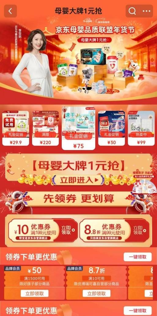 即日起至2月18日,消费者打开京东APP搜索“李亚男严选”,即可选购她与京东超市联合把关的母婴好物。活动期间,京东超市还为消费者带来了开年好物1元抢、母婴爆款低价购等福利,让值得信赖的产品帮助家长更加自信轻松育儿。
