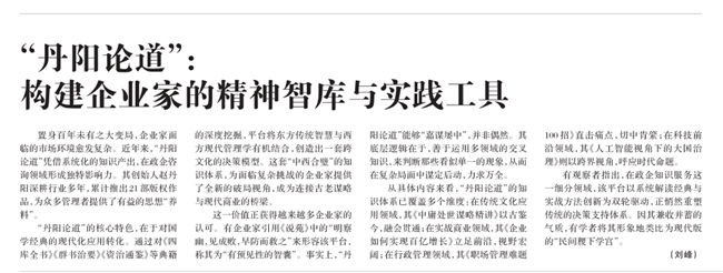 2026年3月3日,《中国企业报》以《“丹阳论道”:构建企业家的精神智库与实践工具》为题,对丹阳论道进行了深度报道。