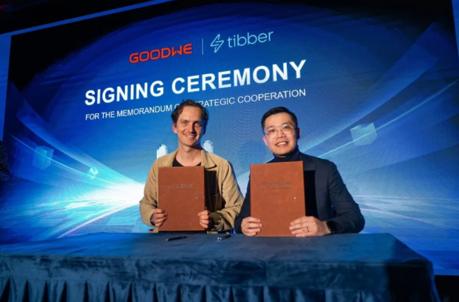 发布会现场,固德威与 BeeBop、Frank Energie、Tibber 等企业签署战略合作协议,将储能技术与虚拟电厂服务结合,助力家庭应对动态电价,加速智慧能源普及。