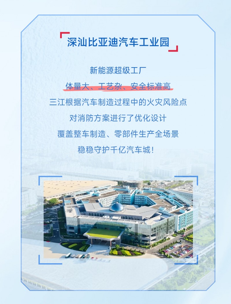 凭借专业的消防解决方案和丰富的行业服务经验,高新投三江已为多个大型新能源产业园区、超级工厂提供定制化消防安全服务,成为新能源产业安全生产的坚实后盾。