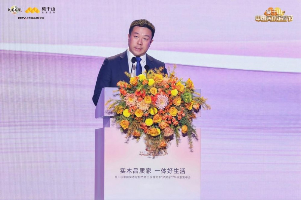 大国品牌授牌的余温未散,发布会迎来又一核心高潮。莫干山大家居总经理刘元秀登台,面向全场正式发布行业瞩目的莫干山实木“好房子”7M标准体系。