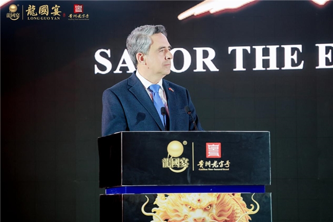 马忠福在致辞中指出:“我们提出‘品味中国,酱香世界’的品牌愿景,正是希望通过龍國宴这一载体,让世界品味东方酿艺的独特魅力,感受中华文化的深厚底蕴。”