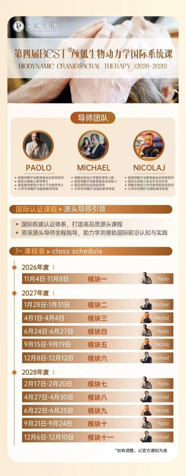 本课程由英国颅骶疗法教育基金会(CTET)中国授权方定诚文化全程主办,遵循国际BCST颅骶生物动力学系统最高教学标准。