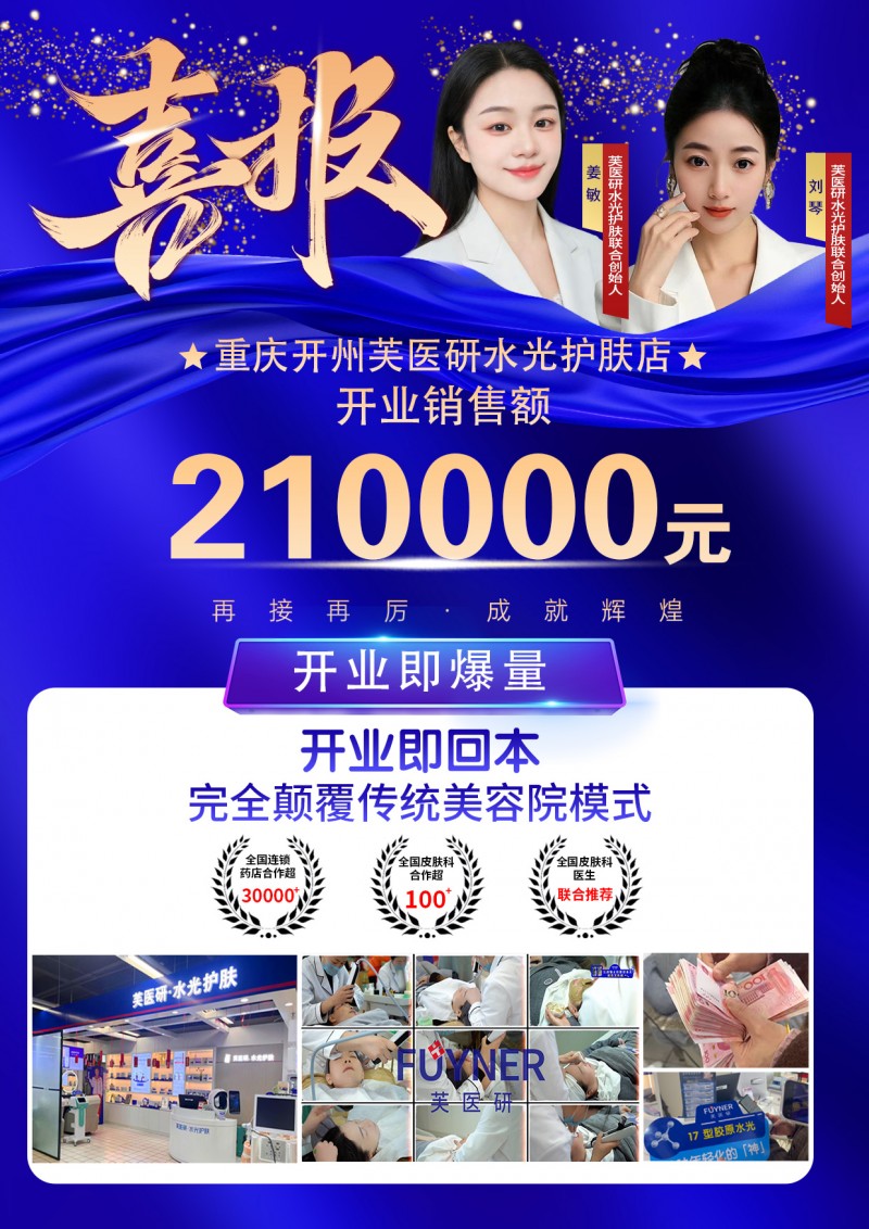 芙医研科技美肤重庆店开业又爆了!开业回款,开业销售超21万,客单均价超5000元;