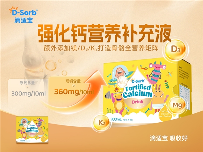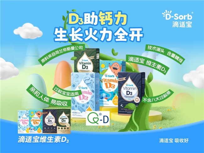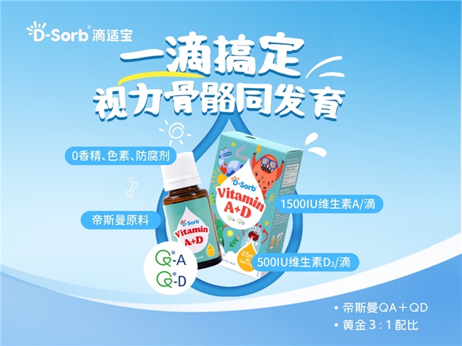 春季作为儿童生长的黄金窗口期,科学精准的营养支持至关重要。滴适宝系列产品围绕儿童生长核心营养需求,从维生素D开启钙吸收的第一道门,到强化钙以“补-促-锁”闭环夯实骨骼根基;从维生素A与D双元协同护航,到强化锌双锌添加。滴适宝以科学为基石,以纯净为底线,构建起覆盖儿童春季生长多维需求的精准营养矩阵。这个春天,滴适宝愿与每一位用心育儿的家长并肩同行。让我们以科学营养为笔,以日常守护为墨,共同绘就孩子健康成长的蓝图。