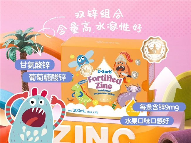 锌缺乏会导致生长迟缓,干扰生长激素的代谢,并损害新生儿至青春期的生长发育。多项研究表明,身材矮小的儿童,普遍存在锌缺乏或血清锌水平偏低的情况。补充锌对锌缺乏或血清锌水平低的矮小儿童的生长发育具有显著疗效,可增加生长激素(GH)的分泌以及胰岛素样生长因子-1(IGF-1)和胰岛素样生长因子结合蛋白-3(IGFBP-3)的生成,从而促进生长。滴适宝强化锌,氨基酸螯合锌和葡萄糖酸锌双锌添加:螯合锌生物利用度高,结构稳定对肠胃温和无刺激。每袋精准含有9毫克锌元素,以双重吸收路径确保补锌效率。