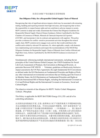 瑞浦兰钧负责任全球矿产供应链尽责管理政策
