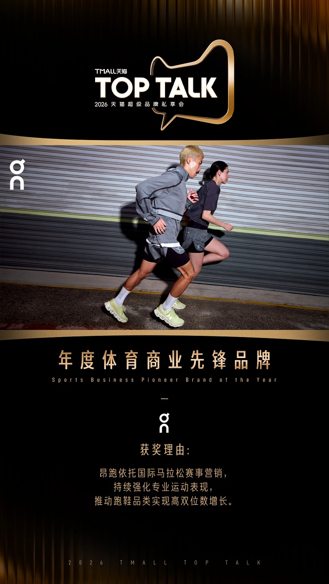 On昂跑则一出道即自带“专业”标签,作为瑞士专业跑鞋品牌,On昂跑在专业跑者圈层拥有着良好的口碑,但如何打通从专业赛场到日常穿搭的转化链路,是品牌在国内市场面临的核心挑战。25年初On昂跑首次与天猫IP合作,借助平台手淘与频道内容资源积累优质人群资产,联动马拉松赛事、精英代言资源,将专业口碑转化为高端品牌认知,助力品牌亚太区连续四个季度实现爆发增长,打通从专业运动到大众潮流的转化链路。