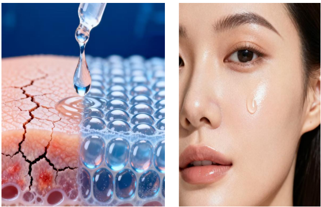 伊恋姿®医用透明质酸钠修护(膜)液,以医用级高纯度透明质酸钠为核心,大分子锁水成膜,小分子深层渗透,一贴实现: