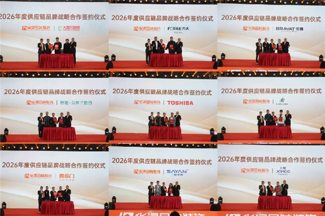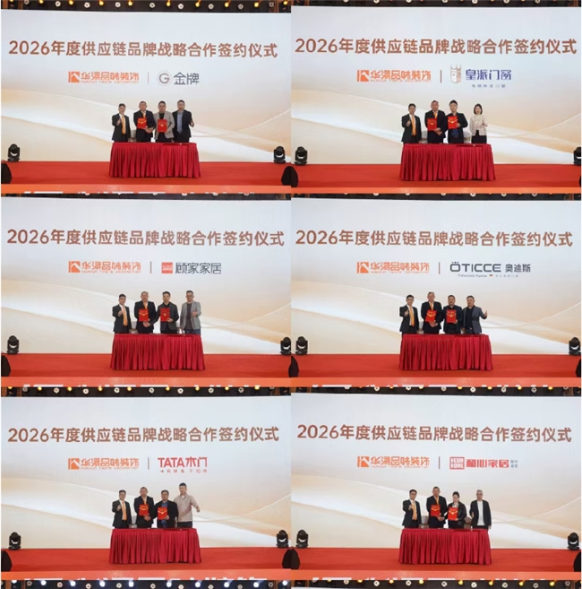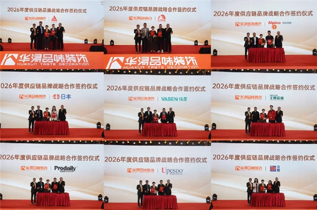 会上,华浔品味装饰还分别与西卡防水、东方雨虹、日丰集团、伟星新材、丰果管道、普梵达水管、立邦涂料、阿尔贝娜、永鼎电线、科博森电线、西门子开关插座、正泰居家、公牛开关插座、俊朗开关配电箱、龙马新材、捷文辅材汇、班力仕环保建材、象达利、金牌整家大家居、皇派门窗、顾家家居、奥迪斯门窗、TATA木门、和心窗帘、开开木门、金凯德入户门、梦天木门、大自然地板、方太电器、贝朗卫浴、特地陶瓷、东芝空调、慕思集团、喜临门床垫、三扬照明、九牧卫浴、罗蓝国际、安吉尔净水器、新锦成陶瓷、潜水艇、德尔地板、海尔智家等数十家核心战略合作品牌现场签署2026年度战略合作协议,围绕品质升级、产品创新、成本优化、服务协同等方面达成全方位共识,共同构建更紧密、更高效、更具竞争力的产业生态。