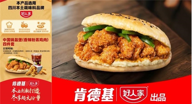 好人家与肯德基联合推出的香辣粉蒸鸡肉堡,中式饼底取代传统汉堡面包,口感柔软、有嚼劲,搭配麻辣软糯的粉蒸鸡肉,口感丰富、麻辣鲜香再加上灵魂土豆泥和清爽青椒丝,让口感层次更饱满。而带给粉蒸鸡肉堡地道风味的核心正是——好人家香辣粉蒸肉调料,作为好人家的明星产品,该调料的加入成功满足了年轻消费者对新鲜口味与多样体验的追求。正是凭借多年积累的行业经验和对消费者需求的深刻洞察,在此次与肯德基的合作中,才充分展现了好人家在调味品创新研发与食安领域的领先实力。