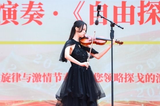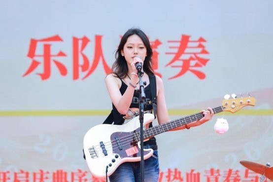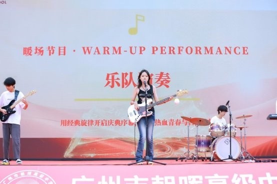 仪式开始前的操场上,青年学生们已经就位,乐队、弦乐、舞蹈与醒狮表演轮番上阵,他们用精彩鲜活的节目点亮了整个舞台——这是揭牌仪式前的暖场,也是学子们为朝晖的新篇章写下的的开场白。