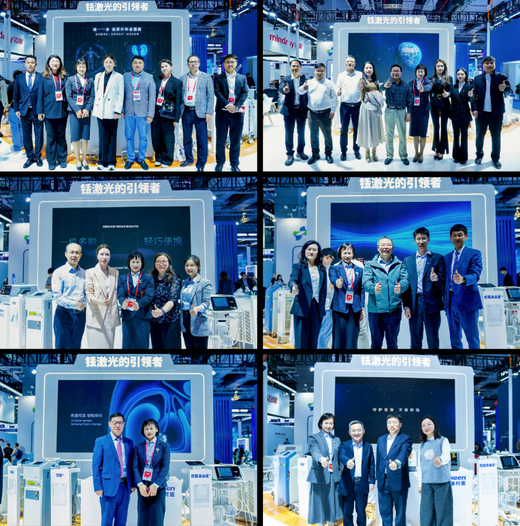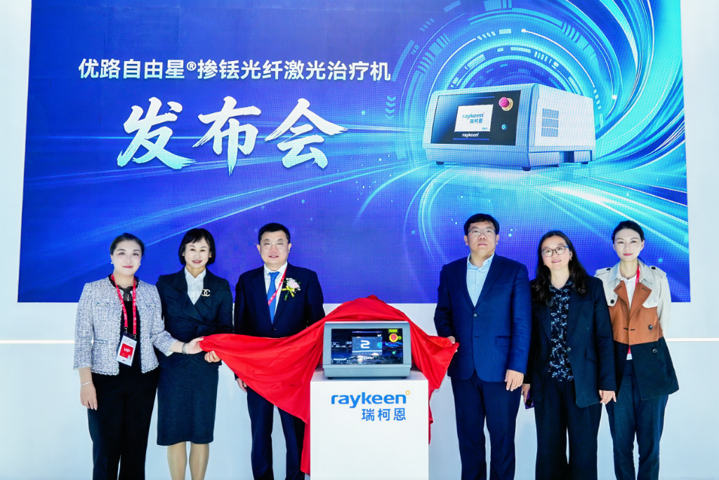 开展首日,中国医学装备协会副理事长兼秘书长李志勇、副秘书长任芳,华润医疗器械公司党委书记、总经理王兴凯等嘉宾莅临瑞柯恩展台。在瑞柯恩铥激光上市十周年之际,优路自由星®超脉冲铥激光焕新发布,嘉宾们共同见证这款旗舰产品的亮相,为本次展会的重磅活动拉开序幕。