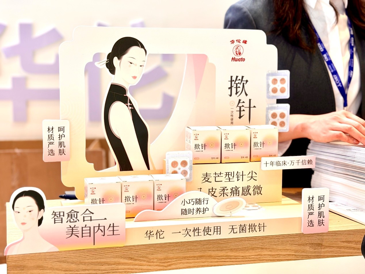 CMEF期间,中华老字号品牌“华佗”旗下一次性使用无菌揿针在京东健康全网首发。该产品拥有超过10年临床应用历史,覆盖全国超3000家医院。在严格保留医疗级无菌标准与精密工艺的前提下,新品针对家庭美容场景进行了全方位体验优化,如推出了7种精细化针长规格以适应面部不同区域的精细护理需求,并配套“0门槛”穴位美容教学与社群陪伴服务,满足都市人群对“安全、有效、有据可依”的中式美容解决方案需求。