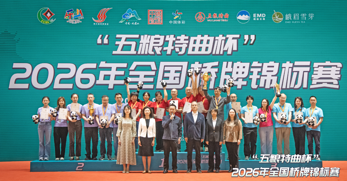 4月20日,为期12天的“五粮特曲杯”2026 年全国桥牌锦标赛在四川乐山峨眉山市中信国安体育馆圆满收官。作为本次大赛总冠名方,五粮特曲全程助力这场国内级别最高、设项最全、参赛规模最大的桥牌盛会,以品质之名,与全国桥牌爱好者共赴智力竞技之约。