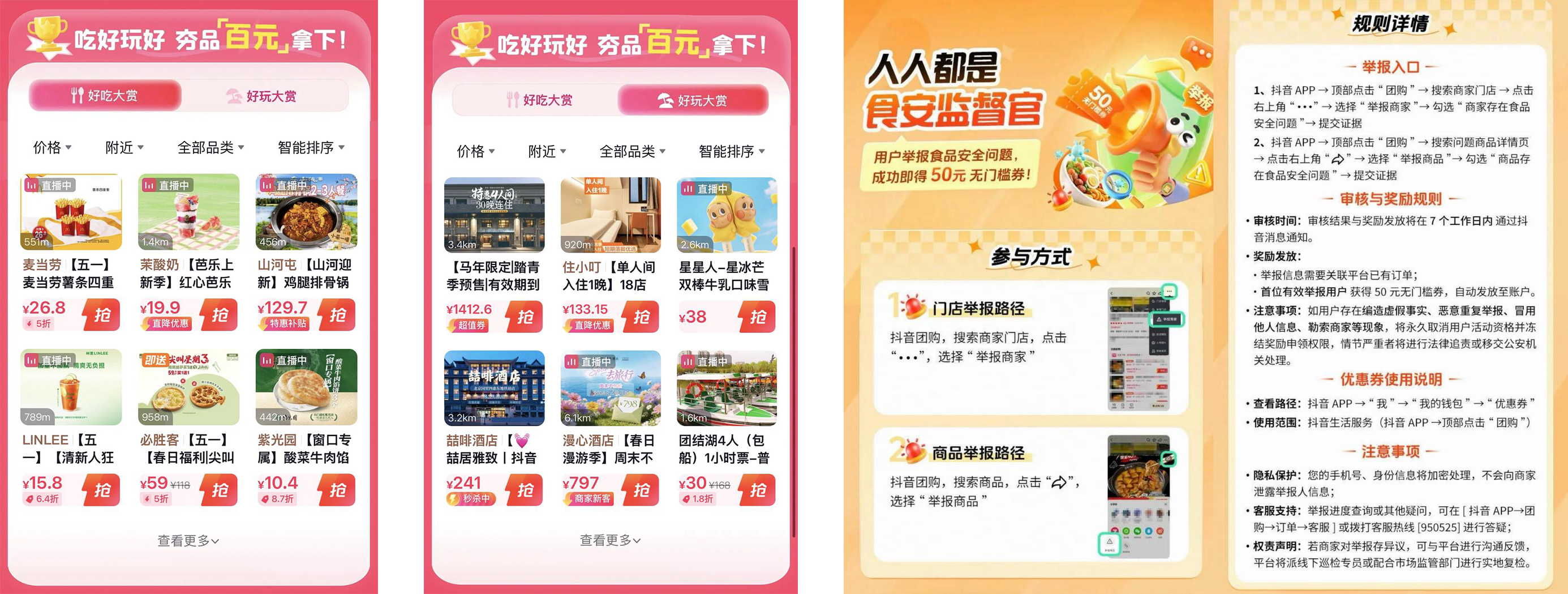 贴心不止优惠与玩法,美食安心同样拉满。活动同步开启「人人都是食安监督官」专属板块,全程守护大家用餐健康。万一遇到食品安全相关问题,可一键快捷举报反馈,全程安心有保障,让大家五一放心吃、畅快玩,度假体验满分在线。