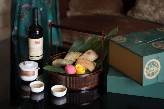 高端甄选,采用四款有机枕粽(红豆、红枣、牛肉、黑米燕麦),搭配莉琥珀红茶、简约快客杯套装(手抓壶1只、品茗杯2只、手提包1个)、圣安雅1966干红葡萄酒750ml、咸鸭蛋4枚及momo擦手巾,适合商务赠礼或家庭高端享用。酒店此次端午粽礼,既保留了经典肉粽、白米粽等传统口味,也创新融入了干贝、叉烧、有机牛肉等特色食材,兼顾不同人群的喜好。礼盒包装融入中式美学元素,自用体面,赠礼有情。
