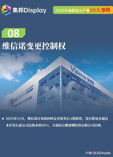 2025年11月,维信诺宣布拟向特定对象发行A股股票,发行数量未超过本次发行前公司总股本的30%,全部由合肥建曙投资有限公司认购。本次发行完成前,维信诺无控股股东、无实际控制人,若本次顺利推进并实施完成,维信诺的控股股东将变更为合肥建曙,而后者由合肥市蜀山区人民政府实际控制,相当于维信诺将由合肥国资控股,有利于其增强经营稳定性,助力其在全球IT OLED竞赛中强化综合竞争力。