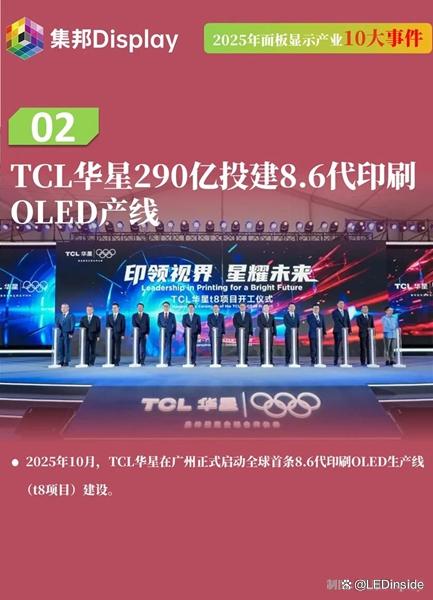 2.TCL华星290亿投建8.6代印刷OLED产线
